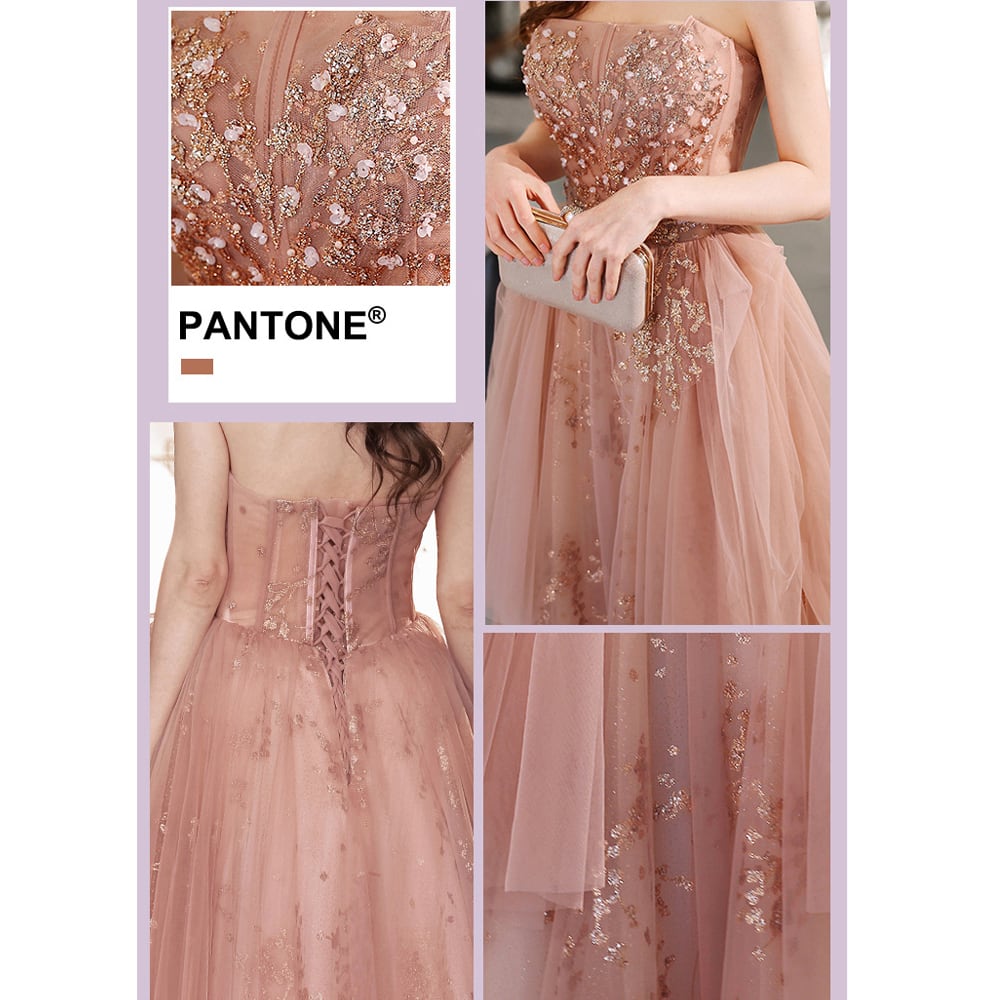 大人らしさと上品な女性らしさを兼ね備えたピンクのドレスです。